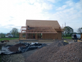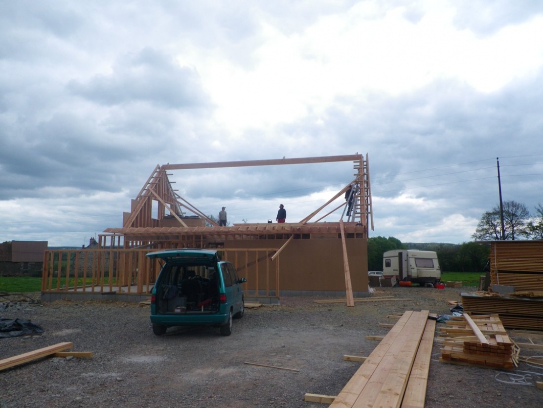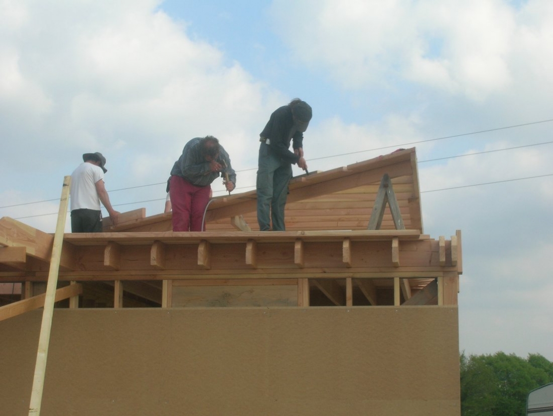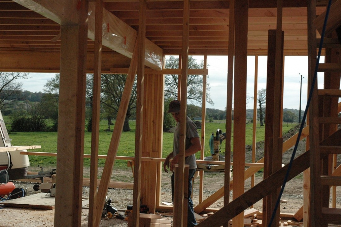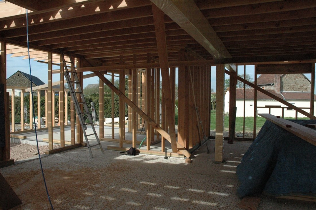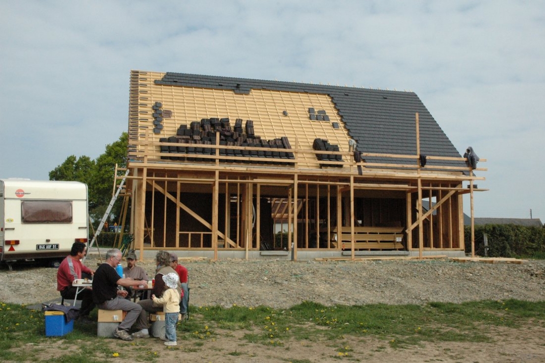 Maison ossature bois en chantier participatif