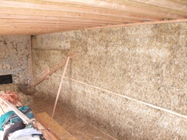Isolation des murs en paille avec une ossature en sur-épaisseur.